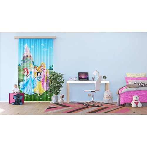 AG Design Prinsessor i trädgården, Disney, gardiner för barnrum, 1 del, blå, 140 x 245 cm