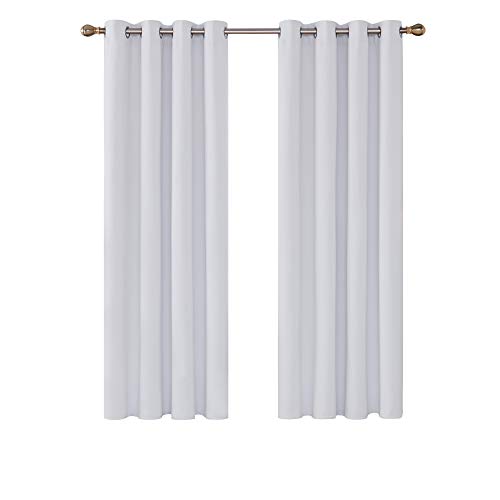 Deconovo Mörkläggningsgardiner, värmeisolerade mörkläggningsgardiner, gardiner för vardagsrum och sovrum, modern design med öljetter, 117 x 160 cm (bredd x höjd), blekvit, grå, 2 delar