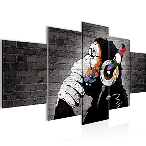 Runa Art - Väggmålningar Banksy DJ Apa med hörlurar 200 x 100 cm 5 Delar XXL Väggdekoration Design Färgglada 042551b