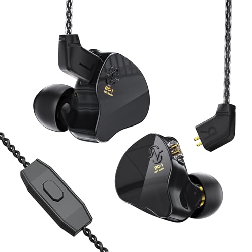 Yinyoo CCZ Melody 10 mm Dual Magnetic Circuit In-Ear IEM Hörlurar, Earfins Design HiFi Deep Bass Hörlurar med 2PIN löstagbar kabel för Audiophile(Svart, mikrofon)