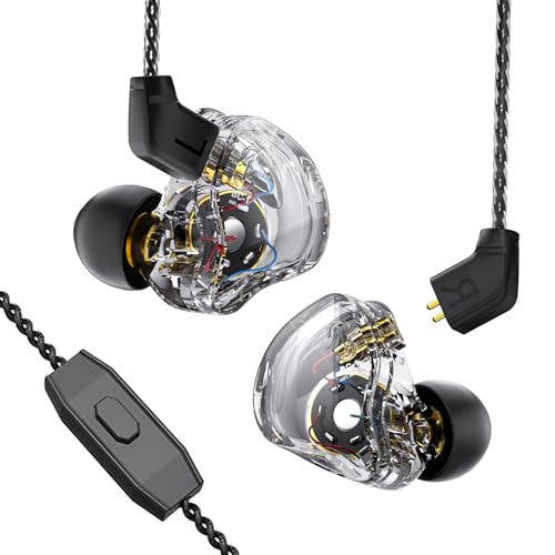 Yinyoo CCZ Melody 10 mm Dual Magnetic Circuit In-Ear IEM Hörlurar, Earfins Design HiFi Deep Bass Hörlurar med 2PIN löstagbar kabel för Audiophile(Klarsvart, mikrofon)