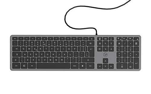 Mobility Lab ML302843 ultratunt PC-tangentbord, elegant och ultratunn design QWERTY US International – kabelansluten – Space Grey – 450 x 130 x 28 mm – QWERTY US International