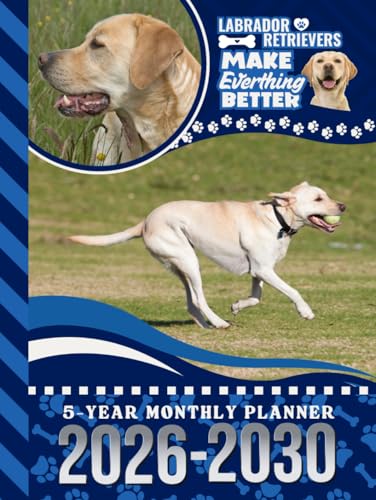 5-Year Monthly Planner 2026-2030: Dated Large / 60 Month Agenda / With Notes Pages - To Do List / Golden Labrador Retriever - Lab Dog Art Cover Design