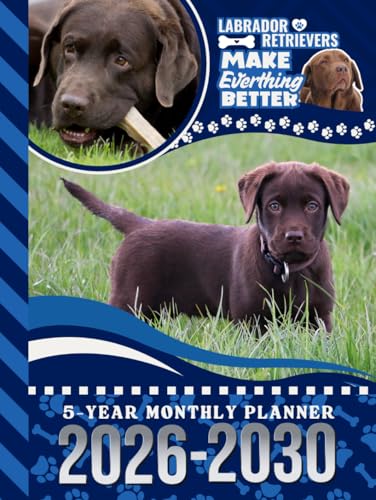 5-Year Monthly Planner 2026-2030: Dated Large / 60 Month Agenda / With Notes Pages - To Do List / Brown Labrador Retriever - Chocolate Lab Dog Art Cover Design