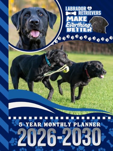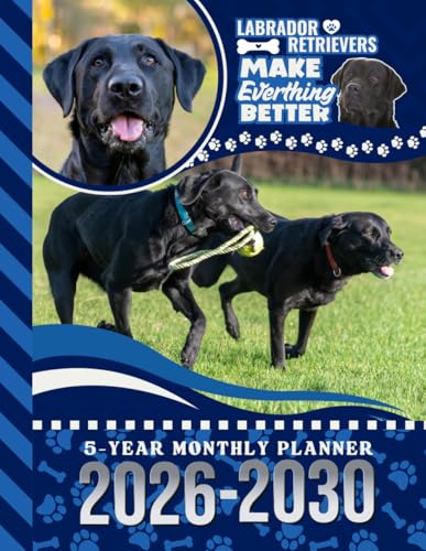 5-Year Monthly Planner 2026-2030: Dated Large / 60 Month Agenda / With Notes Pages - To Do List / Black Labrador Retriever - Lab Dog Art Cover Design