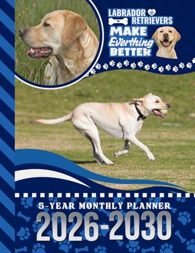 5-Year Monthly Planner 2026-2030: Hardcover / Dated Large / 60 Month Agenda / With Notes Pages - To Do List / Golden Labrador Retriever - Lab Dog Art Cover Design