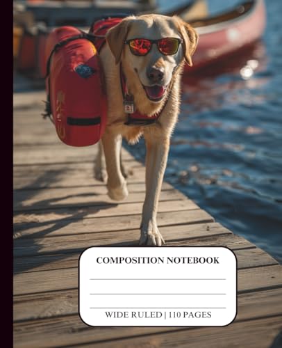 Dog Notebook for Kids Ages 8-12 Wide Ruled Composition Journal for Boys Teens School Supplies Handwriting Middle High Homeschool Creative Writing ... Black Design Theme Cover Yellow Lab Lifeguard