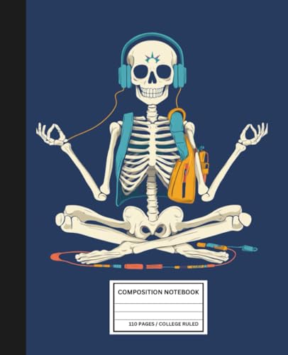 Composition Notebook College Ruled: STEM Skeleton Yoga Notebook – Fun Anatomy Design with Headphones – Lab Journal for Biology, Chemistry, Medicine Students – 7.5 x 9.25 in – Cute Science Notebook