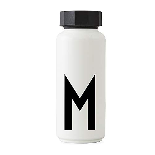 Designbokstäver personlig vit termos rostfritt stål flaska för varma och kalla drycker, isolerad drickflaska när du är på språng för arbete, skola, sport och gym - M