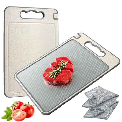 CHDEXU Dubbelsidig skärbräda för kök, 304 rostfritt stål och vetehalm skärbräda för kött grönsaker frukt, skärbrädor med handtag och halkfri design
