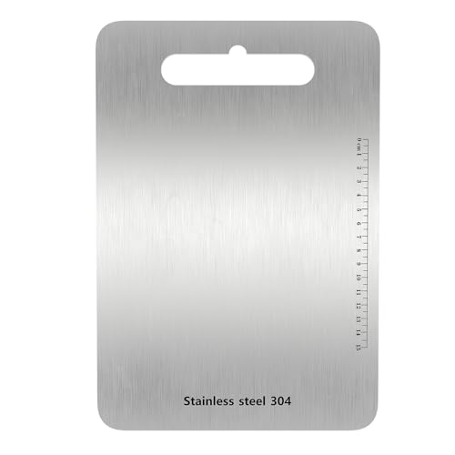 Skärbräda i rostfritt stål 304, camping skärbräda antibakteriell hygienisk hållbar frukostbräda med fingerhål enkel skötsel modern, tilltalande design hackbräda med skala