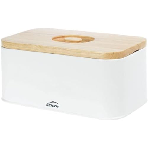 Lacor - 62869 - Panera Nordisk Carbon Steel-stil, gummiträbricka, vintage design 2 i 1: locket fungerar som skärbräda, mäter 42 x 22,5 x 12,5 cm, matt vit.
