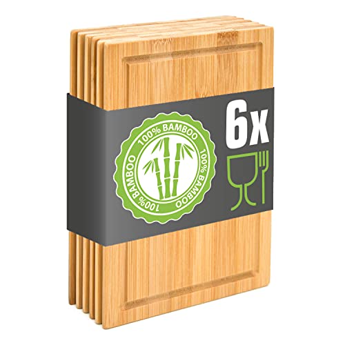 DuneDesign Set med 6 stundbrädor 22 x 15 frukostbrädor skärbräda trä brödbrädor skärbräda bambu små träbrädor kök