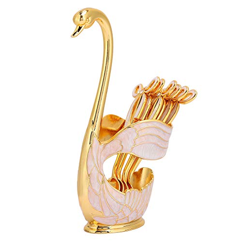 Kaffeskedsställ, Dessertskedsset Tårta Glasssked Matservisset Bow Design Elegant Swan Base Polerad Yta Bordsservshållare Organizer för Hemrestaurang(Gyllene Vit)