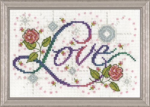 Design Works 2875 "kärlek" 14 stycken vit Aida korsstygnssats, flerfärgad