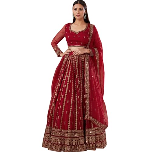 stylish fashion Indian Ready to Wear pakistansk designer evenemang kläder sydda Lahengha Choli kostymer, Bourgogne röd, 10 US Large ( Chest-42 Waist-38 )