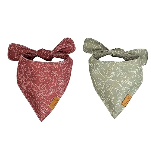 FancyPets hund bandanas (Large) │Röda rosor & Gröna löv │2 pack bandanas för stora och medelstora hundar med snygga designer │kläder och tillbehör för hundar