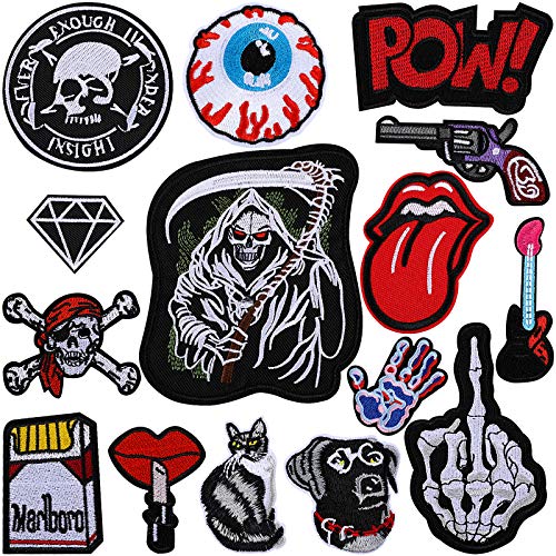 VETPW 15 st blandade coola designer stryk på lappar, sy på lappar broderi applikation reparationsklistermärken för kläder, skjortor, ryggsäckar, jackor, jeans, hattar, reparera hålet