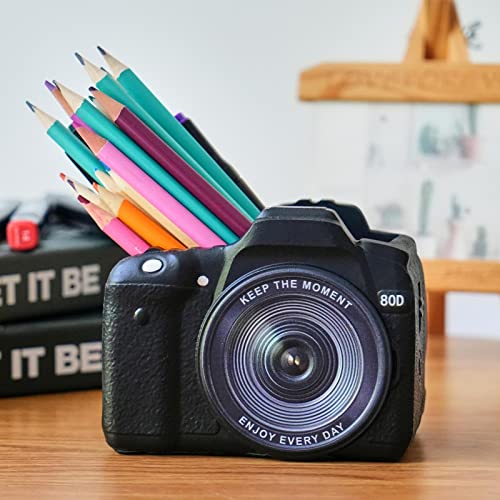 Camera Pen Pencil Holder Desk-Decor - Bookend Shelf Decor Makeup Brush Holder, Aesthetic Desk Accessories Supplies Holders Organizer for Office Stationary Birthday Anniversaries Graduation Gift
