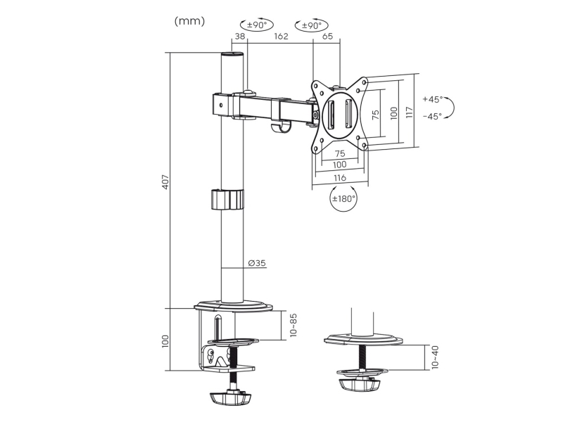 Multibrackets M Desktopmount Single Stand Desk Clamp