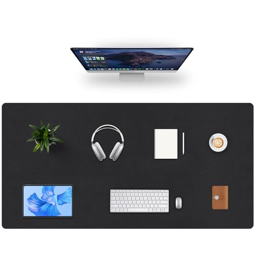 URMONA Läder skrivbordsdynskydd, stor skrivbordsmatta för tangentbord och mus, repsäker och slitstark, mocka halkfri botten (svart 120 x 60 cm)
