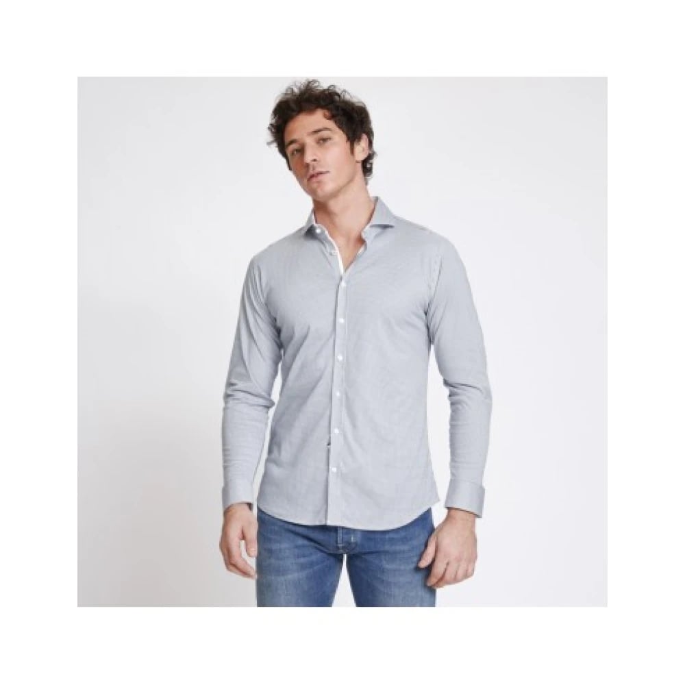 Desoto, Skjortor , Herr, L, Bomull, Blå Pixelmönstrad Skjorta Lyxkollektion