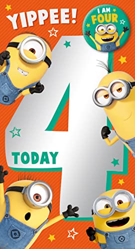 Ålder 4 Minions kort, Grattis på 4:e födelsedagskort Minions, Despicable Me Age 4 födelsedagskort, 4:e födelsedagskort