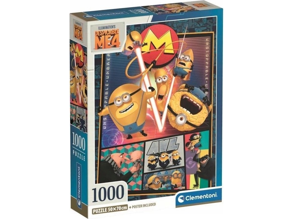 Clementoni 39798 Pussel Samling - Despicable Me 4, 1000 stycken - affisch ingår, pussel för vuxna 14-99 år, present till män/kvinnor, tillverkad i Italien, flerfärgad