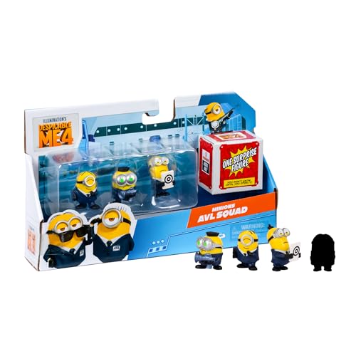 Minions Despicable Me 4 4 Figur Packs AVL Squad | 5,8 cm samlarfigurer | Pack har 3 synliga figurer plus 1 överraskning figur dold