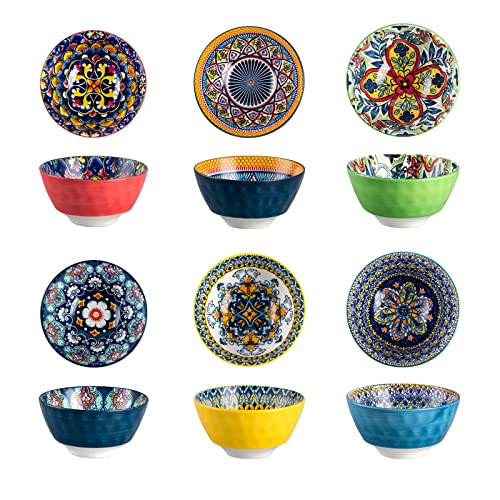 HENXFEN LEAD Dessertskålar, snacksskål 360 ml, salladsskål av porslin, keramisk skål för glass, ris, dessert etc. Färgglad, 6-pack – bohemisk stil