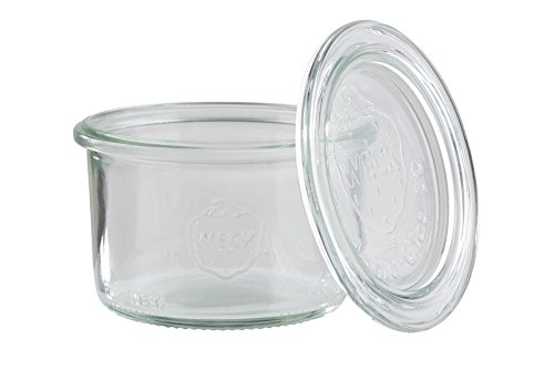 Weck Glasar smyckesglas #902 250 ml (12 stycken, inkl. häftklamrar + gummis, lock ø 60 mm, konserveringsburkar, dessertglas, syltburkar) 58310