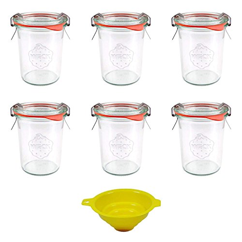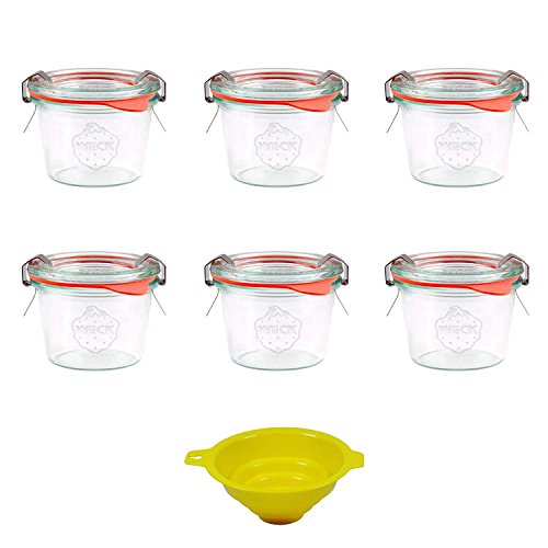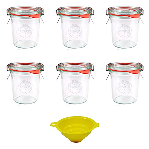 Viva Haushaltswaren – 6 x små väckningsglas/konserveringsburkar 140 ml med lock, tom rund kantglas för konservering – som syltglas, dessertglas (inklusive klämmor, ringar och tratt)