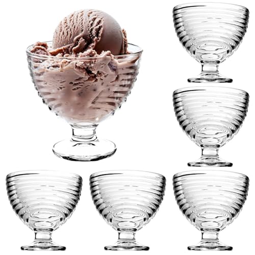 KADAX Dessertskålar med fot, glasglas, transparenta glaskoppar, glasskålar, dessertglas för glass och förrätt och desserter och frukt (vågig 6 stycken)
