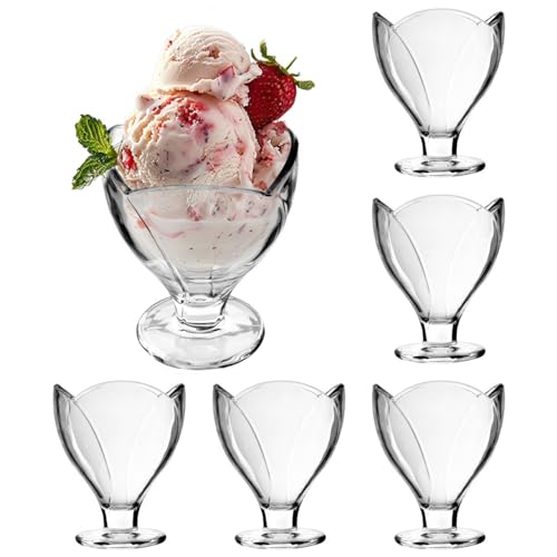 LAV Glassbägare glas, isskålar glas, set om 6 250 ml, 100 BLEI gratis stapelbara glassglas, isskålar glas med fot, dessertskålar glas, dessertglas med fot, glass cream cups