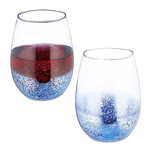 Relaxdays Vinglas utan handtag, uppsättning av 2, röda vinkoppar, 500 ml kapacitet, vattenglas, dessertglas, blå