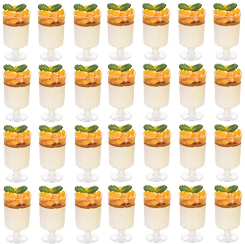 KAHEIGN Mini-dessertglas, 75 ml, runda dessertglas i plast för aptitretare och desserter, återanvändbara serveringsglas för pudding, mousse och mer (8,5 x 4 cm), 100 st