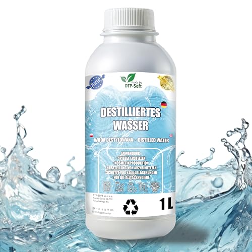 100 % rent destillerat vatten 1 L | demineraliserat vatten 1 L - destillerat vatten lämpligt för strykjärn, luftfuktare, batterier och mycket mer