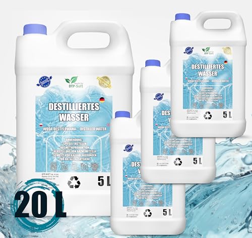 20 liter destillerat vatten 100 % rent | demineraliserat vatten 4 x 5 l – destillerat vatten lämpligt för järn, luftfuktare, batterier och mycket mer