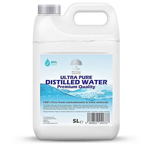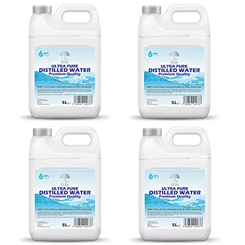 Destillerat vatten, 100 % ren premiumkvalitet, perfekt för CPap, strykjärn, luftfuktare, rengöring, motorer och mer, tillverkad i Storbritannien (5 liter)
