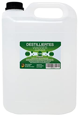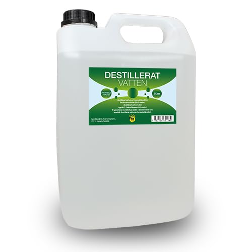 100 % rent destillerat vatten 5 L | 5 L demineraliserat vatten - destillerat vatten lämpligt för strykjärn, luftfuktare, batterier och mycket mer
