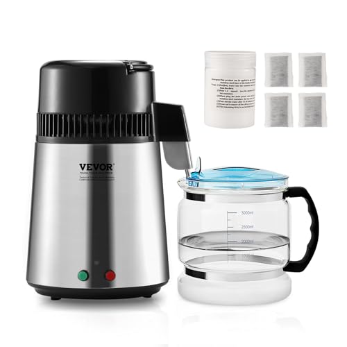 VEVOR Vattendestillator 4 l, maskin för destillerat vatten, 1 l/h, 750 W, inre i rostfritt stål, livsmedelsbehållare i PBT-plast för rening av kranvatten hemma, på kontoret