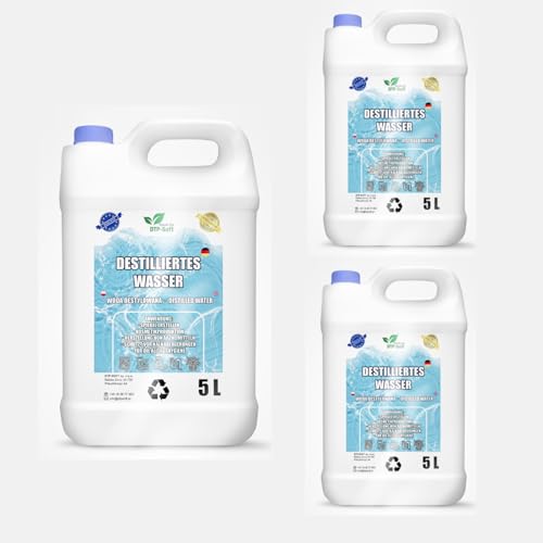 100 % rent destillerat vatten 15 l | demineraliserat vatten 3 x 5 L - destillerat vatten lämpligt för strykjärn, luftfuktare, batterier och mycket mer