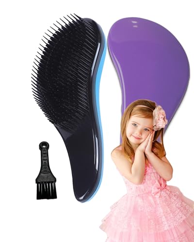 Detangling Hair Brush Set, 2-pack, lila och blå, professionell våt hårborste för kvinnor, män och barn
