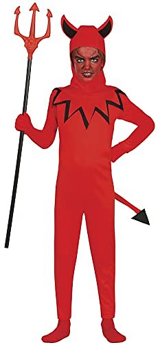 FIESTAS GUIRCA Fire Devil - Röd Demon - Halloween-kostym för barn 10–12 år