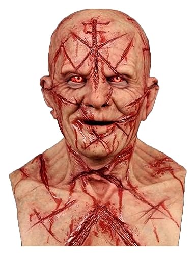 Mask Bald Blood Scar Mask,Scary Halloween Mask,Bloody Headgear 3D Realistic Human Face Headgear, Zombie Caps Mask, Devil Cosplay Props
