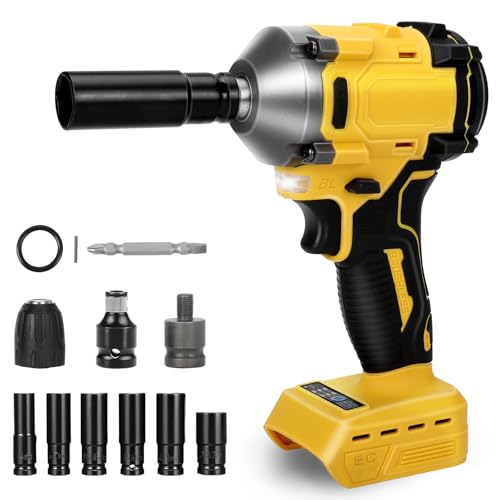 Sladdlös slagskruvmejsel kompatibel med Dewalt 18 V 20 V, 600 Nm, sladdlös slagskruvmejsel 1/2 tum, borstlös motor med hylsnyckel, hylsnyckeladapter (utan batteri)