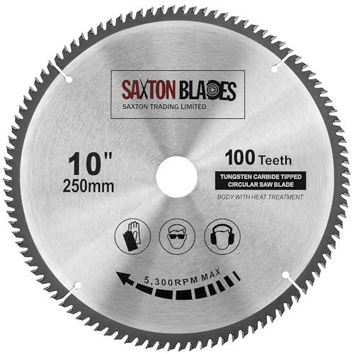 Saxton TCT cirkelsågblad 250 mm x 30 mm x borrning x 100 tänder kompatibel med Bosch, Makita, Dewalt