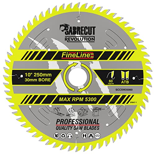 1 x SCCSW25060 SabreCut 250mm 60T x 30mm Bore FineLine Thin Kerf Wood Plywood MDF-spånskiva Cross Cut and Rip Cut Cirkelsågblad Kompatibel med Dewalt Makita Milwaukee och många andra