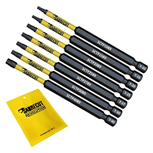 7 x SabreCut SCRK89TXTP 89mm Torx Sabotage Proof T10 T15 T20 T25 T27 T30 T40 Magnetisk säkerhet Slagskruvmejsel Bits Set Torx Heavy Duty Kompatibel med Dewalt Milwaukee Bosch Makita och mer