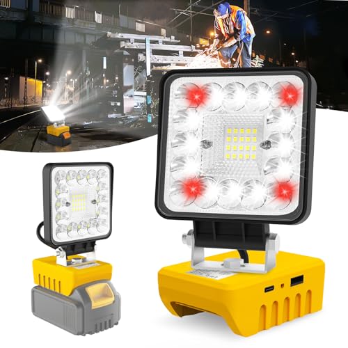 T-SUN LED arbetsstrålkastare för Dewalt batteri 18V, 36W 5000 LM LED-glödlampa uppladdningsbar LED-lampa med 3 lägen för camping, arbete, fiske, nödsituation (utan batteri)